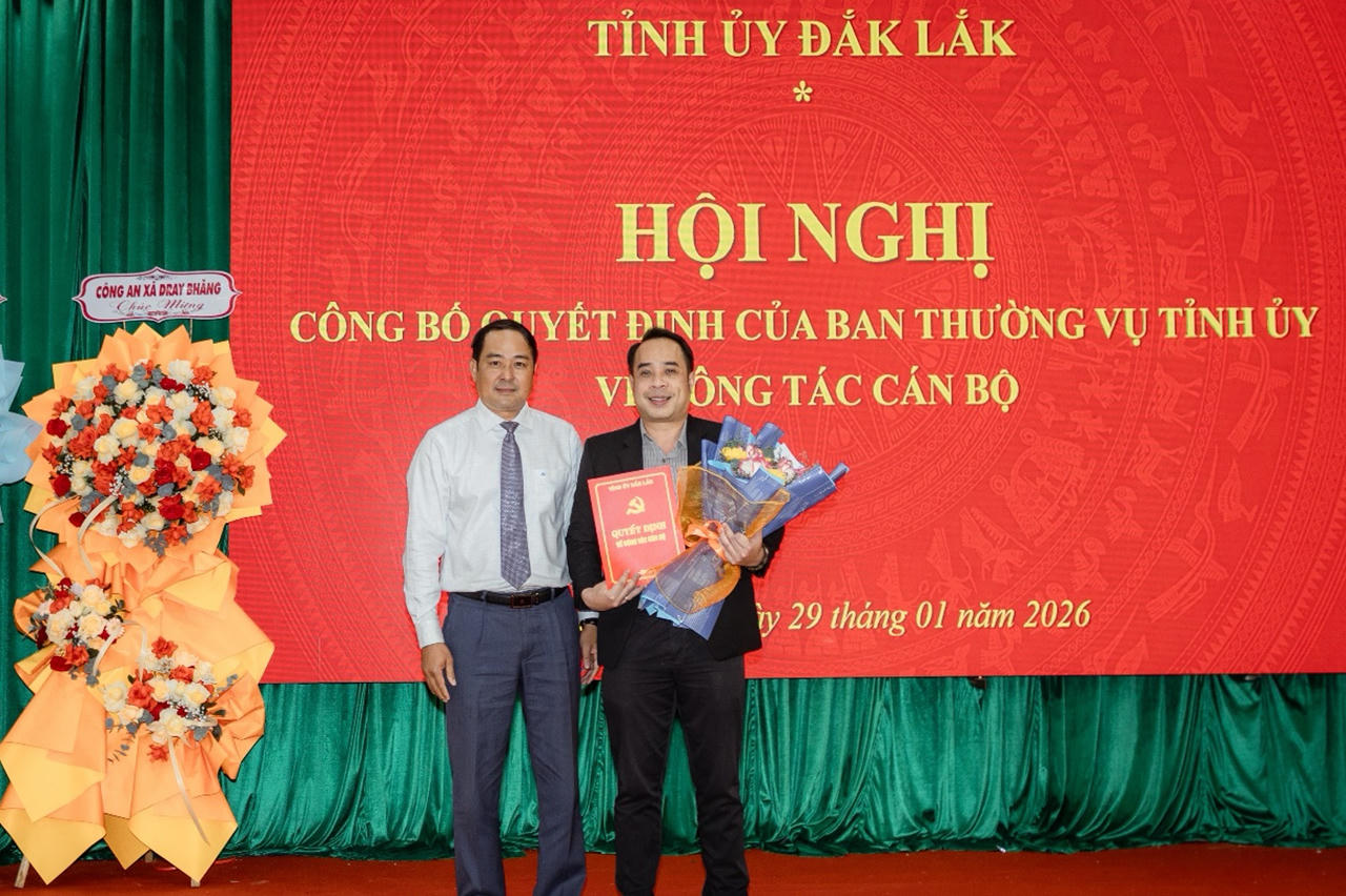 Chiều 29/1, Ban Thường vụ Tỉnh ủy Đắk Lắk tổ chức hội nghị công bố các quyết định về công tác cán bộ tại xã Dray Bhăng, góp phần kiện toàn tổ chức bộ máy, nâng cao năng lực lãnh đạo của tổ chức Đảng ở cơ sở.